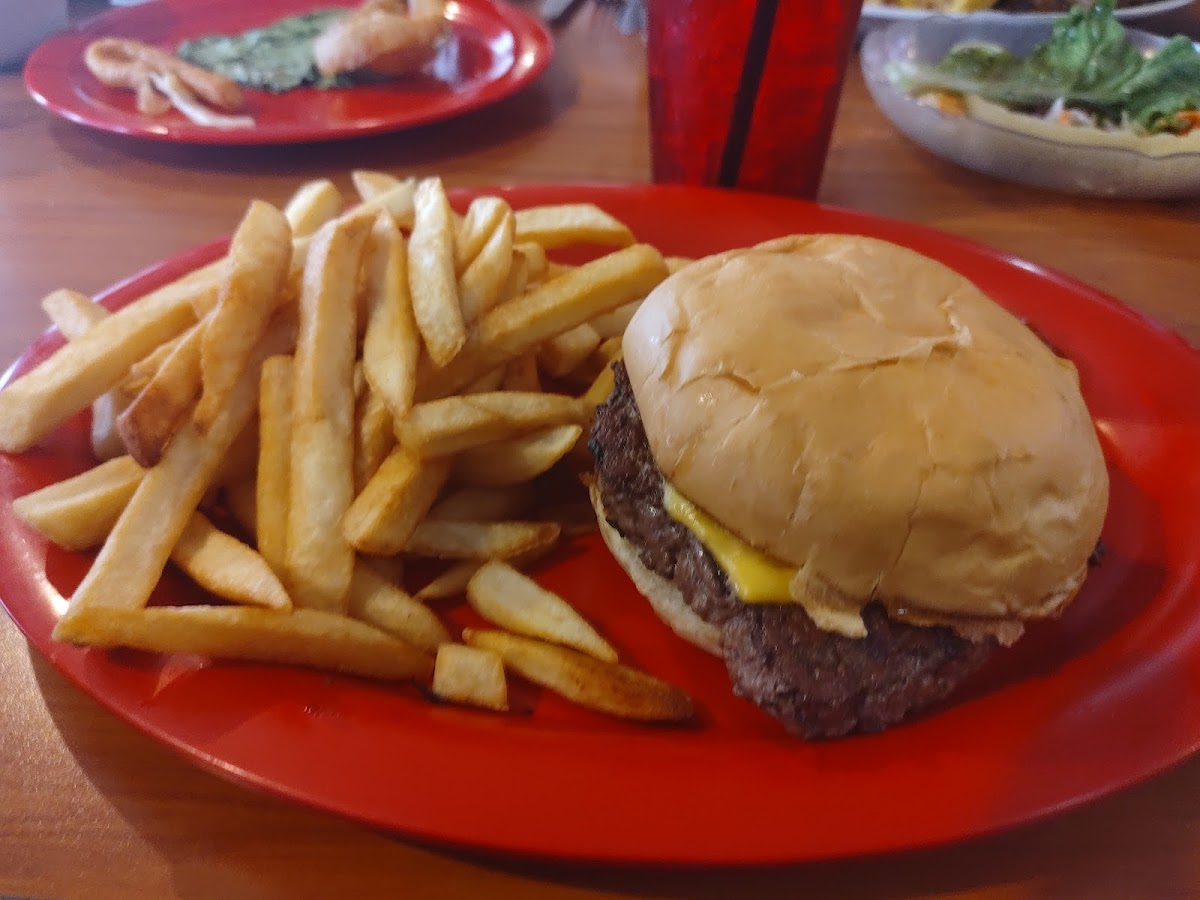 Casual atmosphere and really, honest to God really good food. Not "bar food". ..I mean not greasy My hubs had a bacon cheeseburger that was GENEROUS in size and in taste. I had the BLT with some really good chips. The BLT was not overtly salty which is generally a risk with this sandwich. Great tasting wheat bread lightly toasted. Best of all we had a server that was both attentive, accommodating and a personality that was appreciated by both of us. Kudos to our server Carson M. Highly recommend Oaks Roads Grill & Bar. We'll be going back to try breakfast sometime as well.